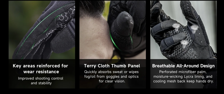 Touchscreen compatible, anti-slip, breathable, tactical mounting, and more